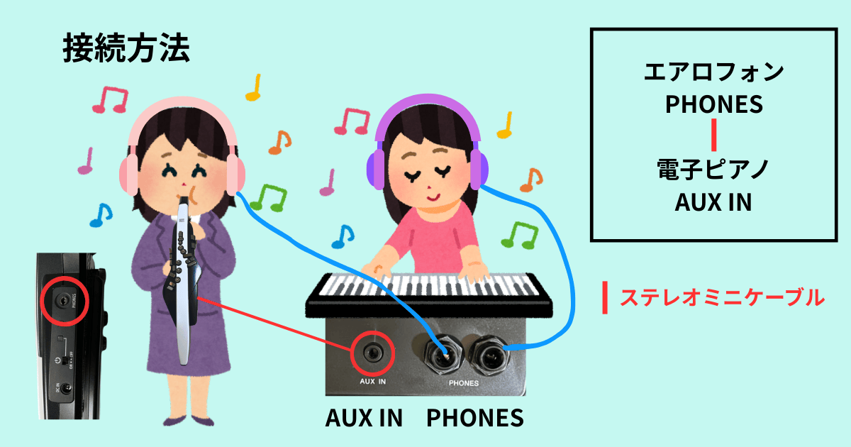 今回は、アンプを使わずに、エアロフォンと電子ピアノを接続して楽しむ方法を紹介しました。
