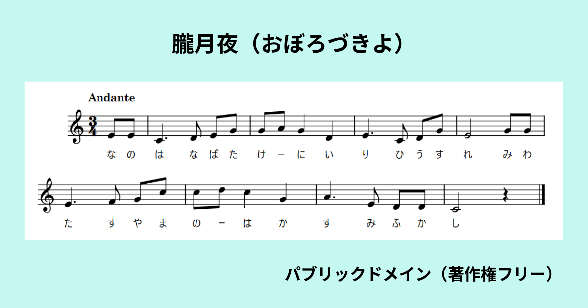 曲:朧月夜のワンフレーズ(著作権フリー)、テンポは♩=80